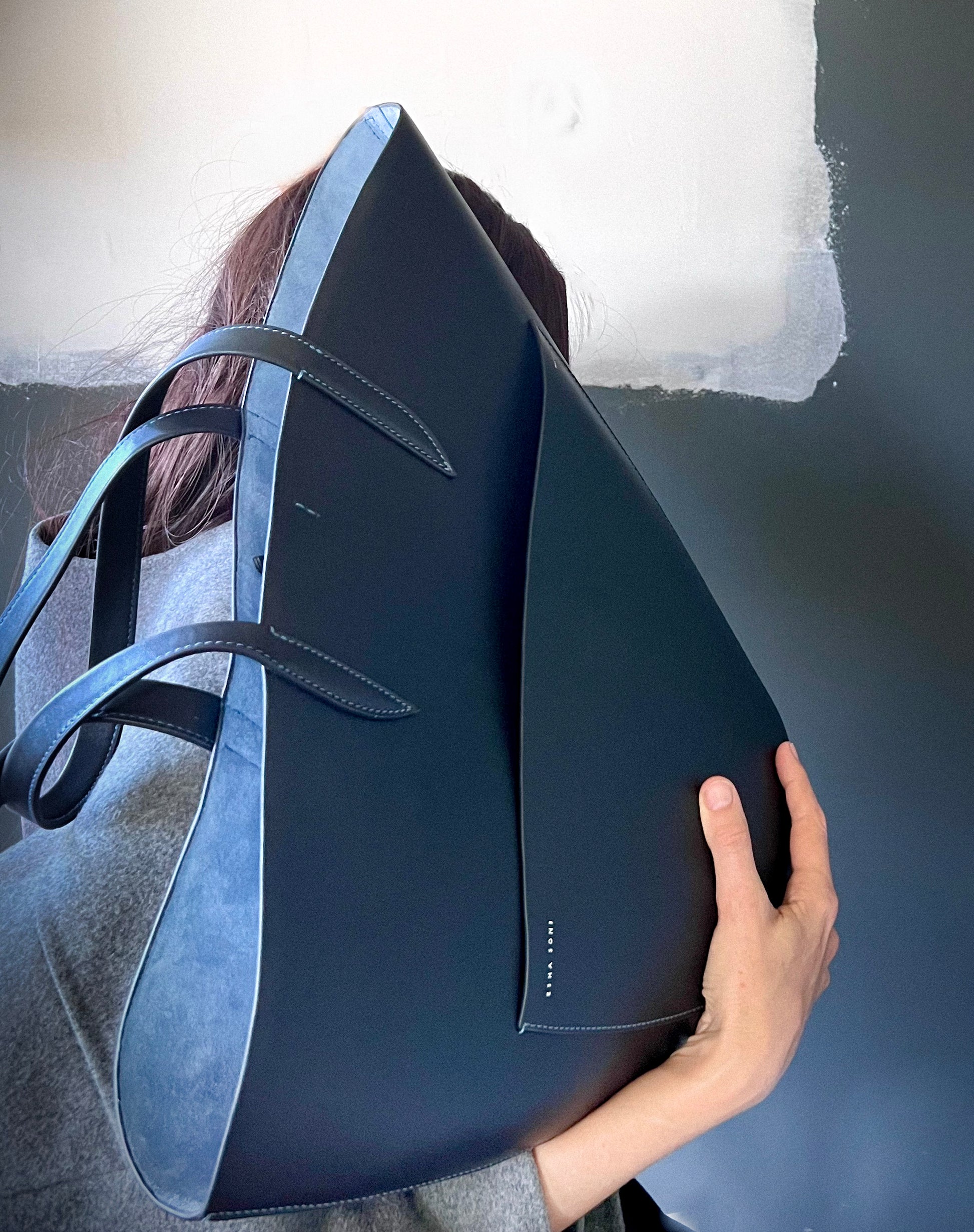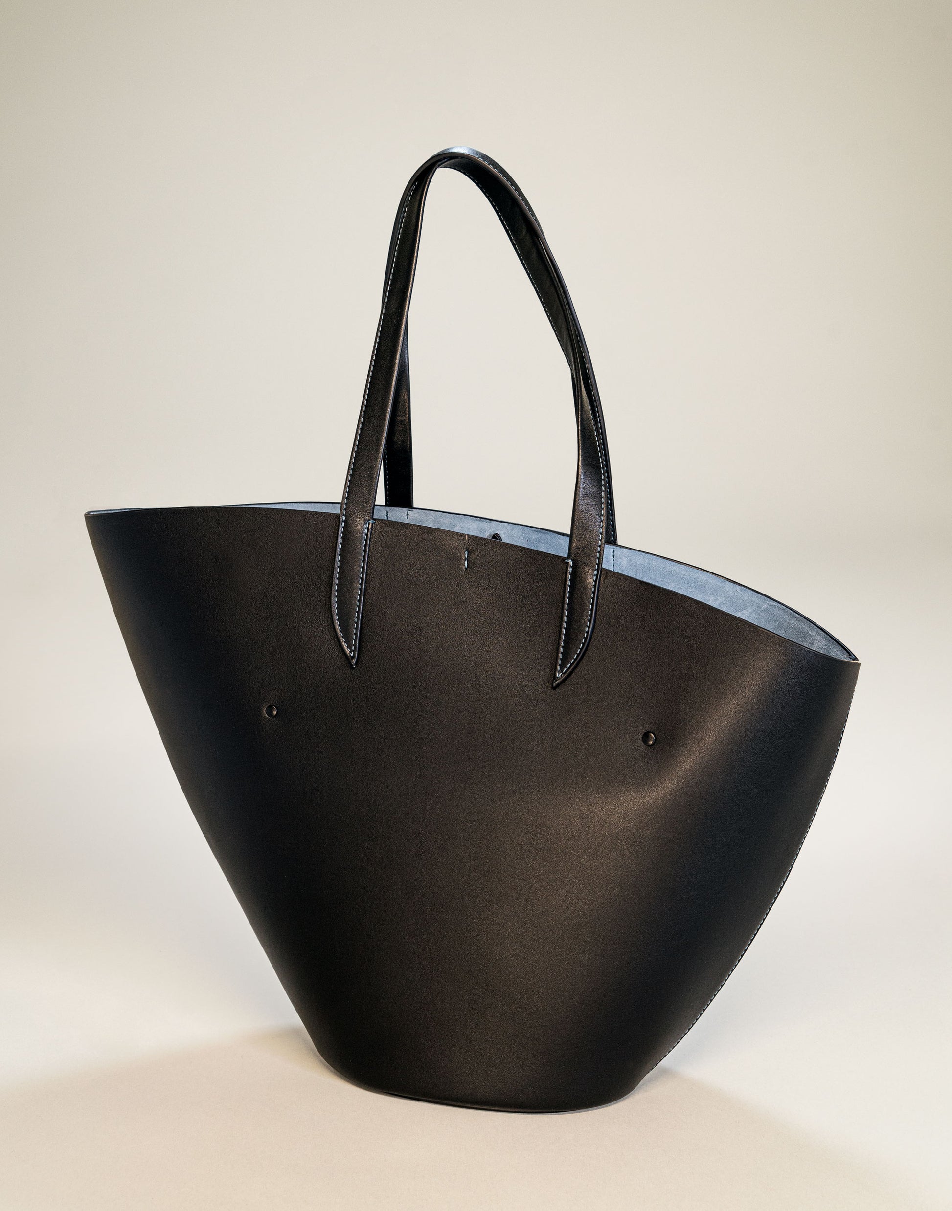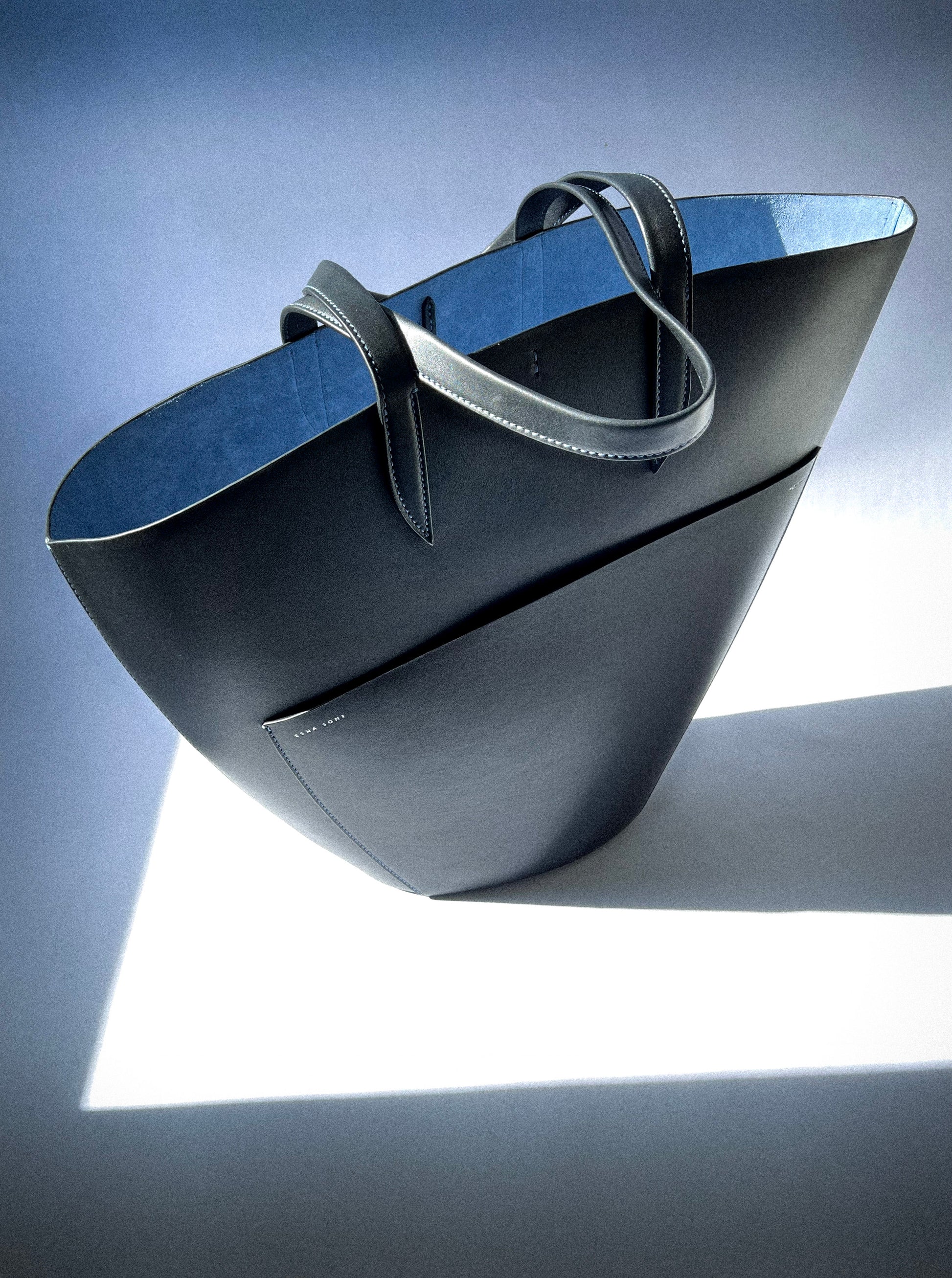 The dramatic curve of the top edge of the bag lends this simple yet beautiful tote a poetic feel.