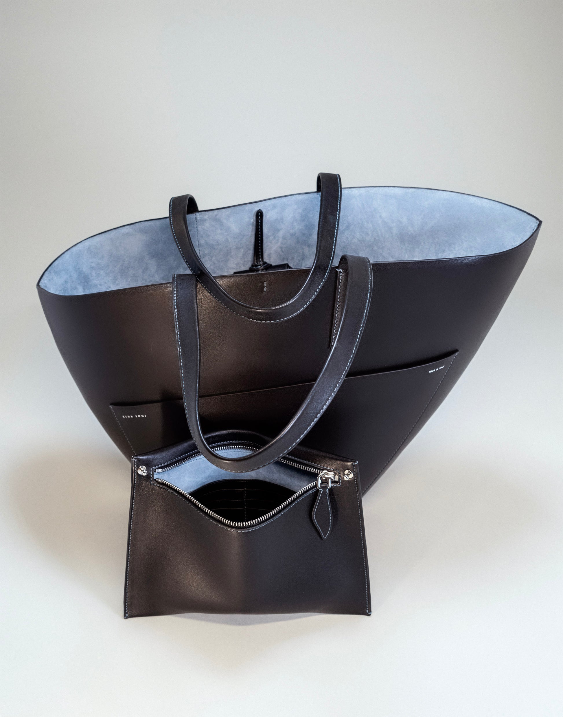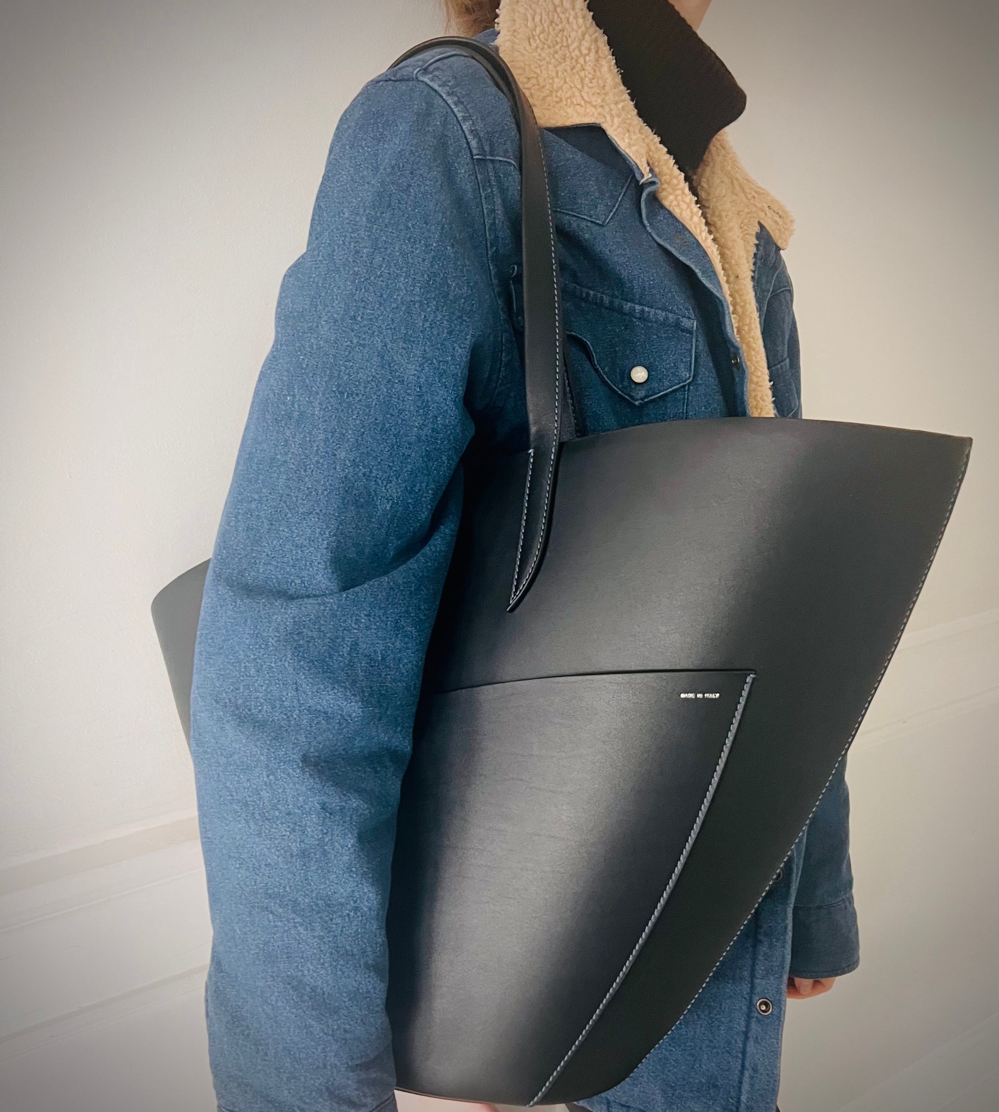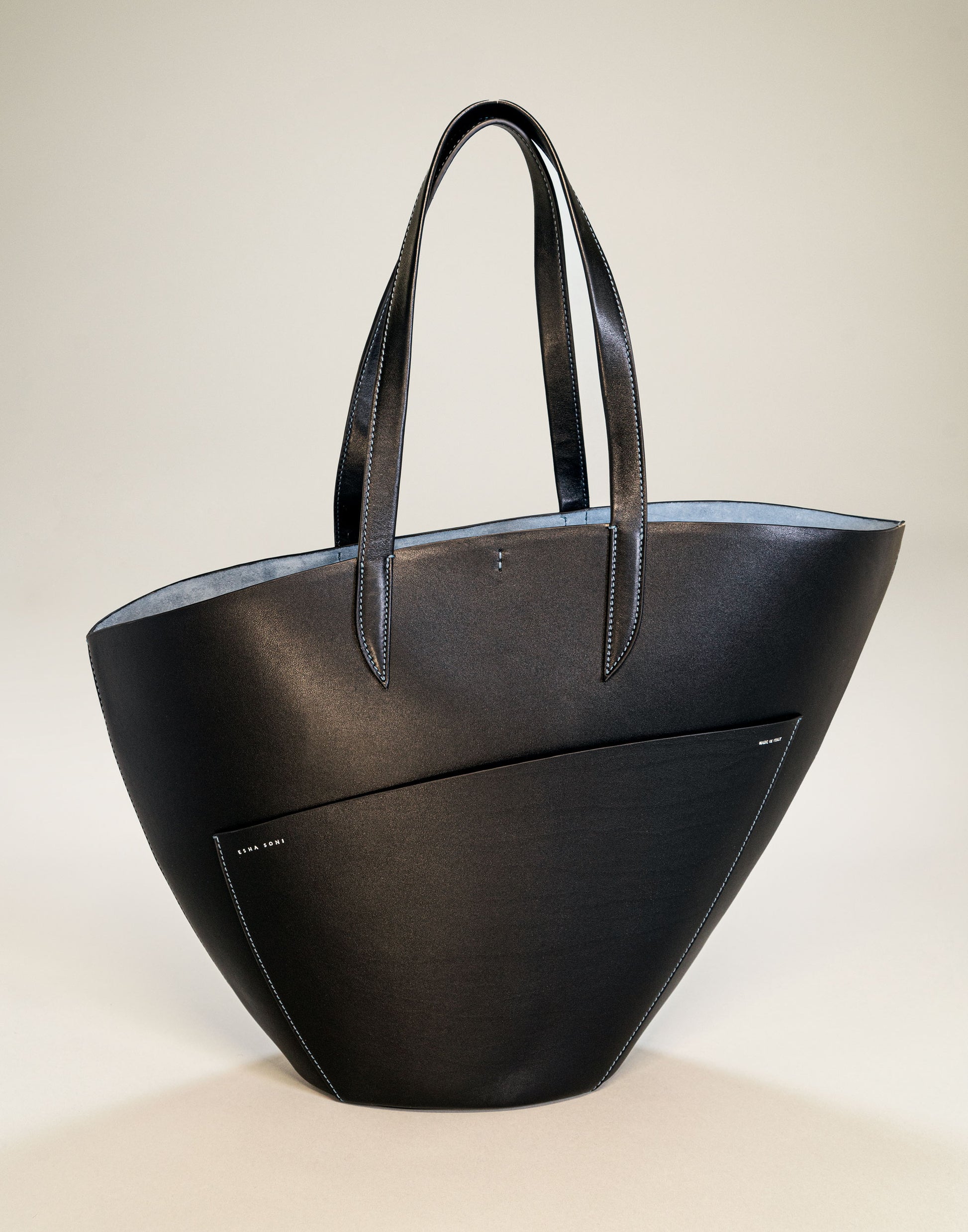 The dramatic curve of the top edge of the bag lends this simple yet beautiful tote a poetic feel.