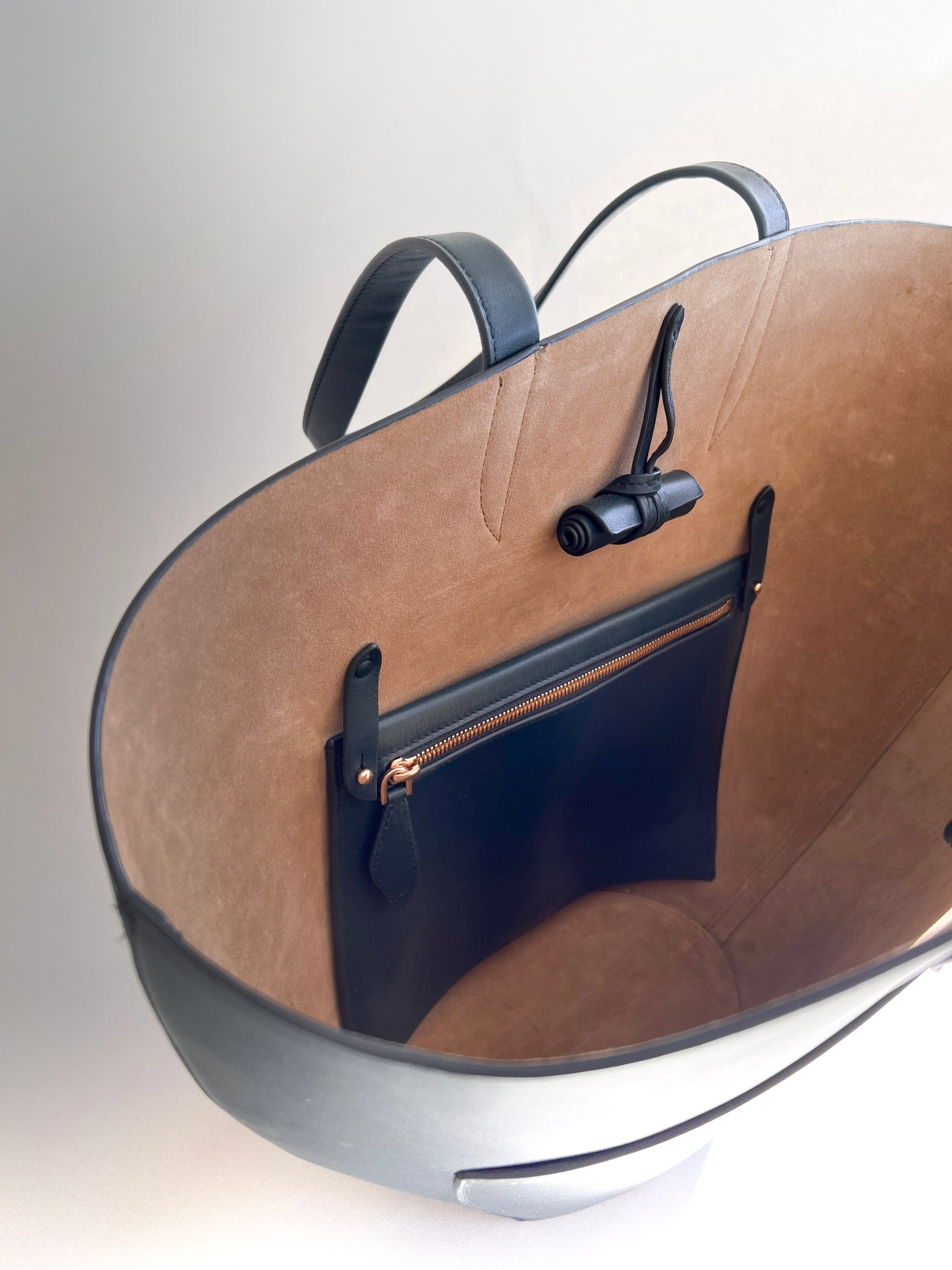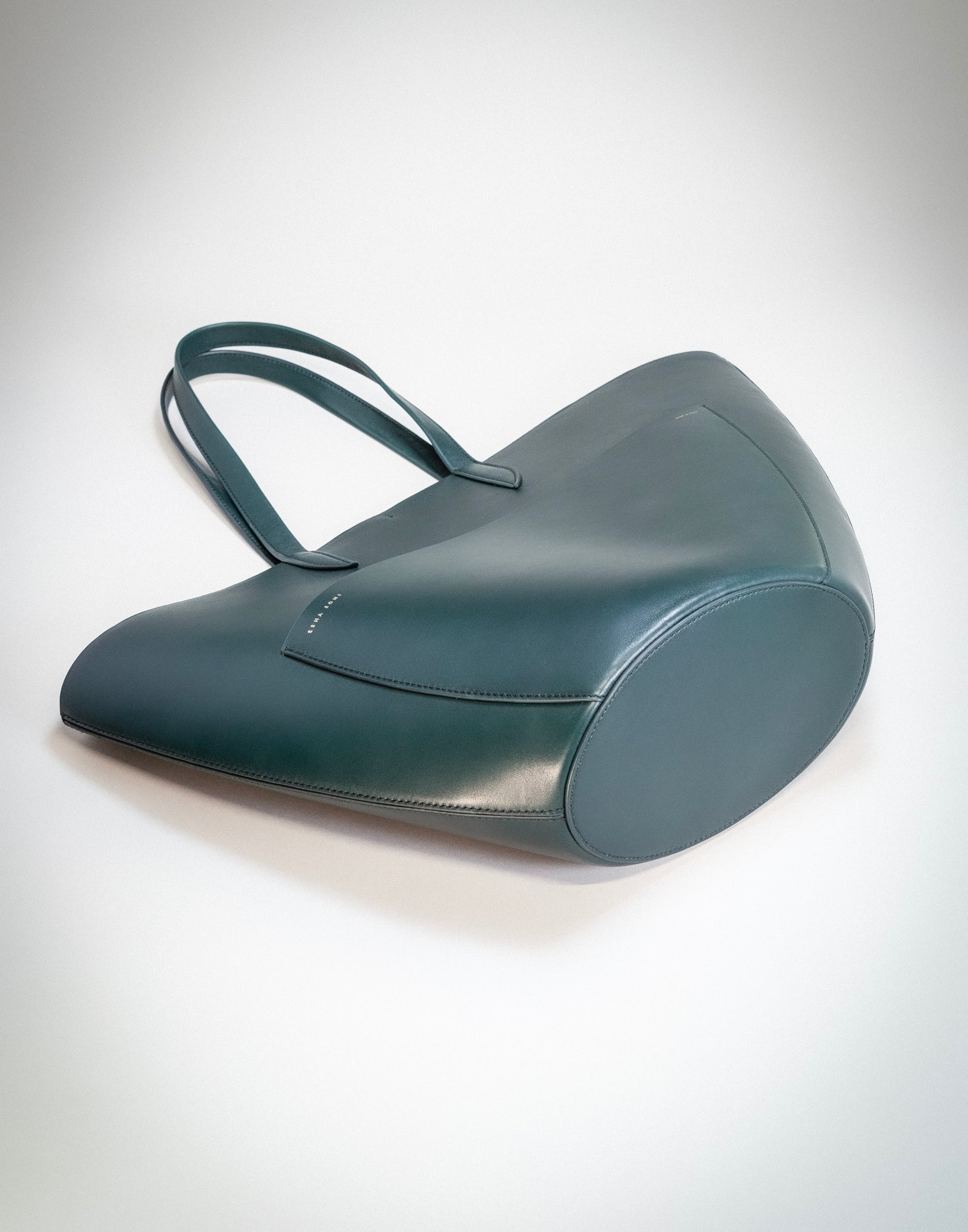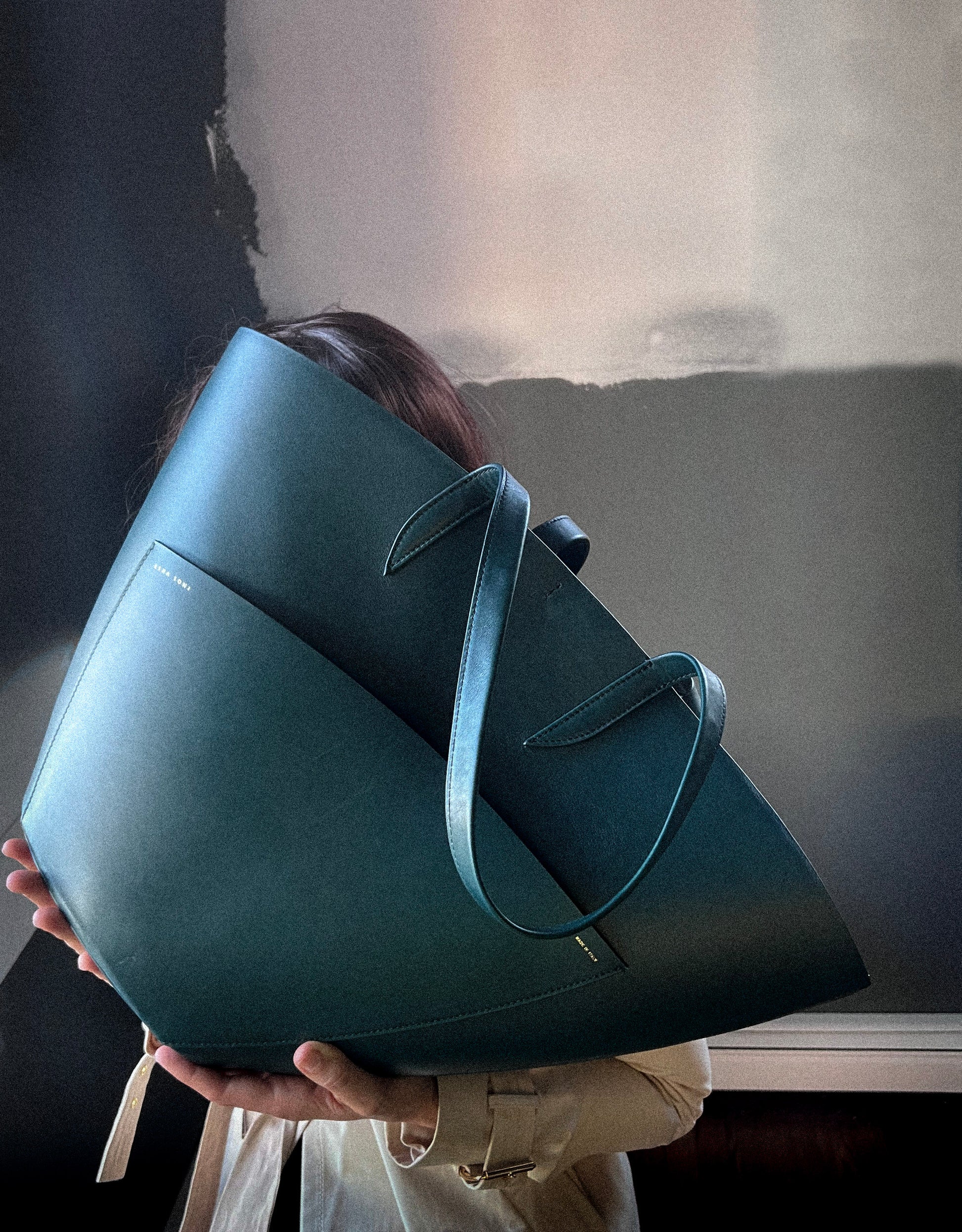 The dramatic curve of the top edge of the bag lends this simple yet beautiful tote a poetic feel.