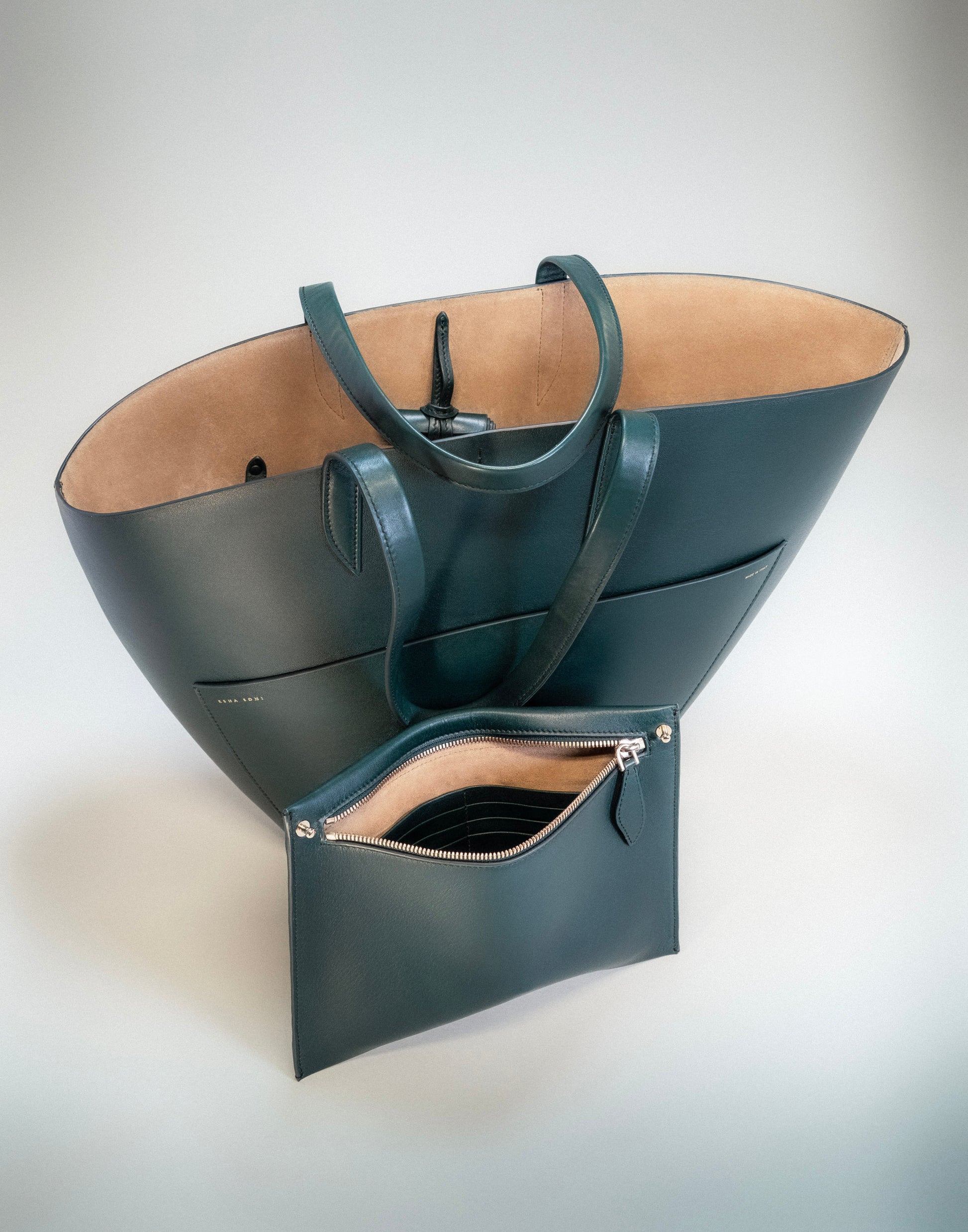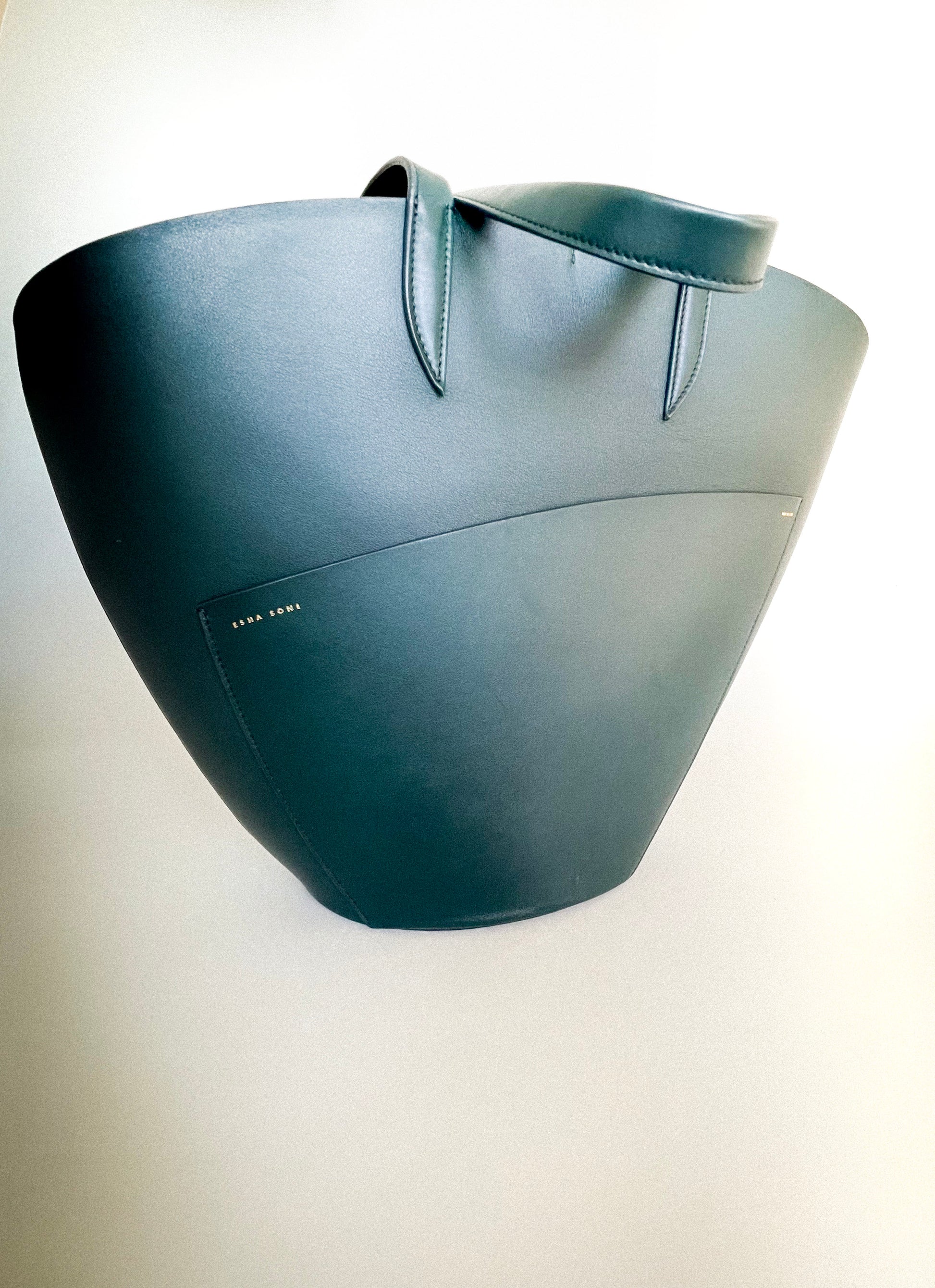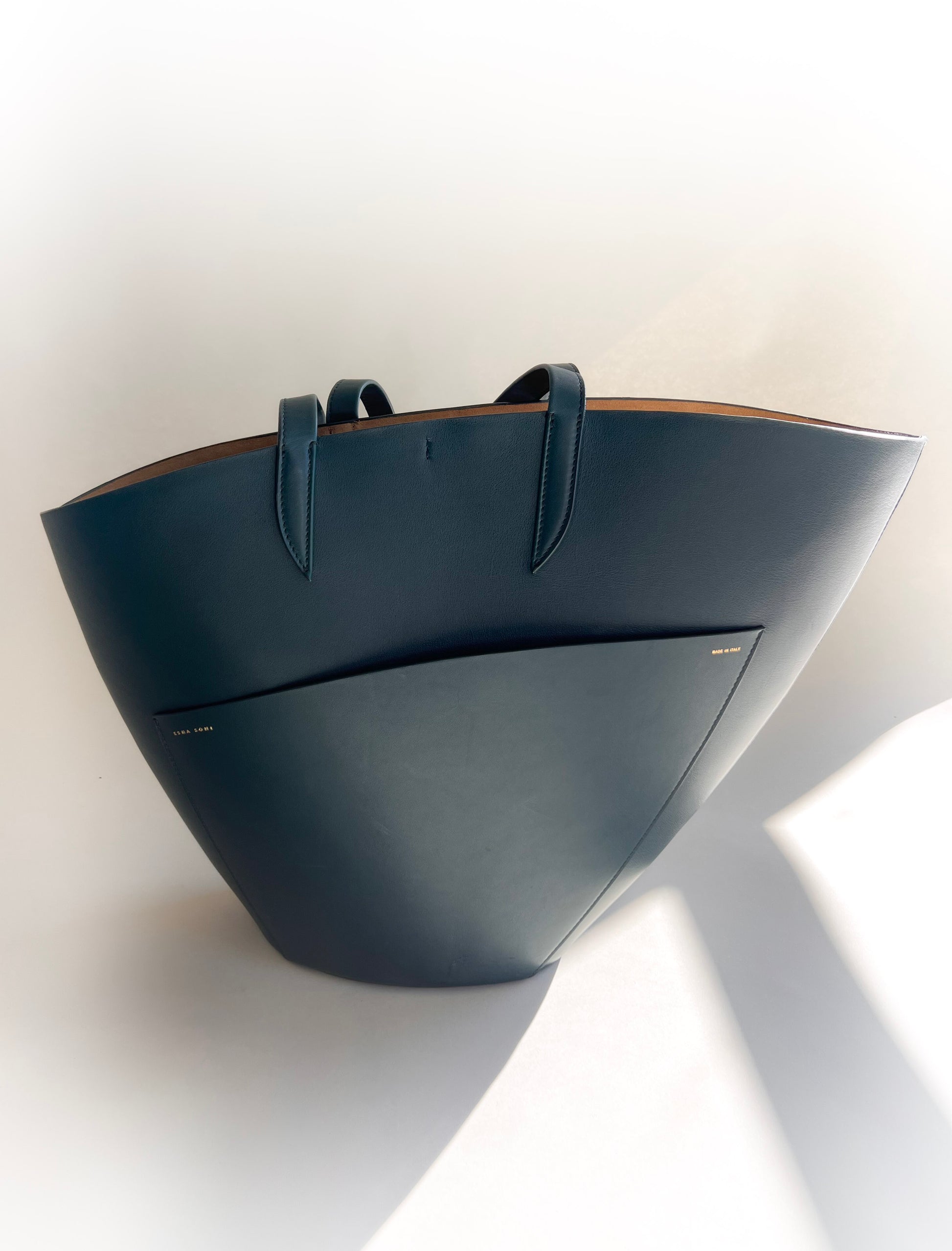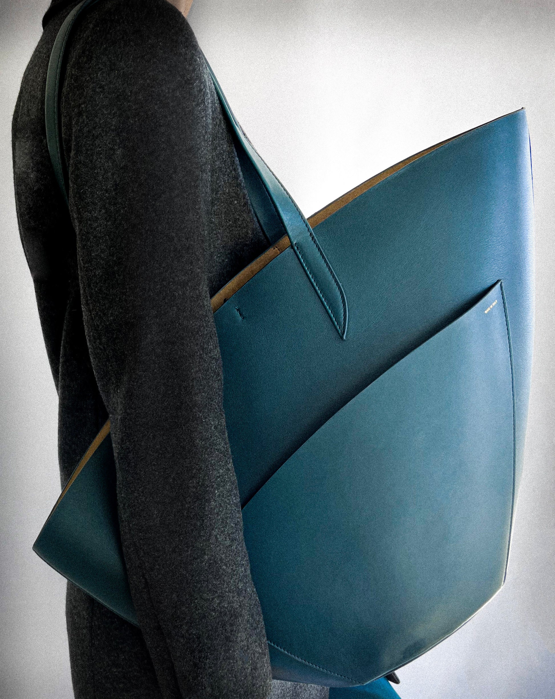 The dramatic curve of the top edge of the bag lends this simple yet beautiful tote a poetic feel.