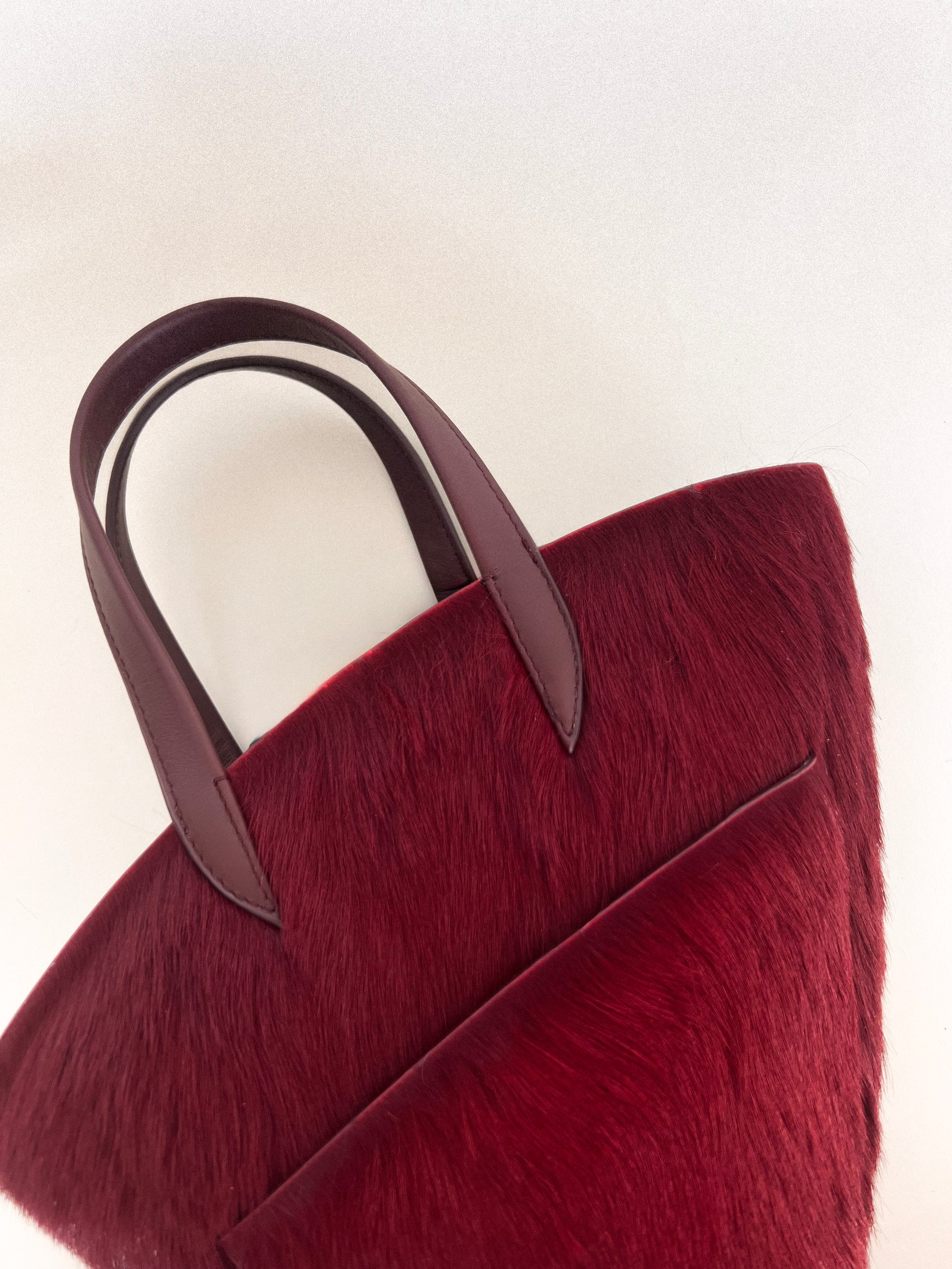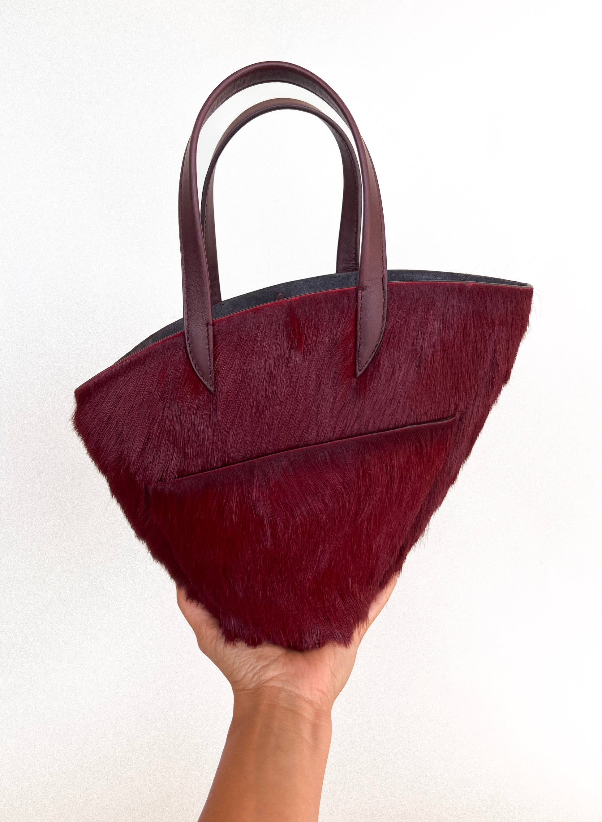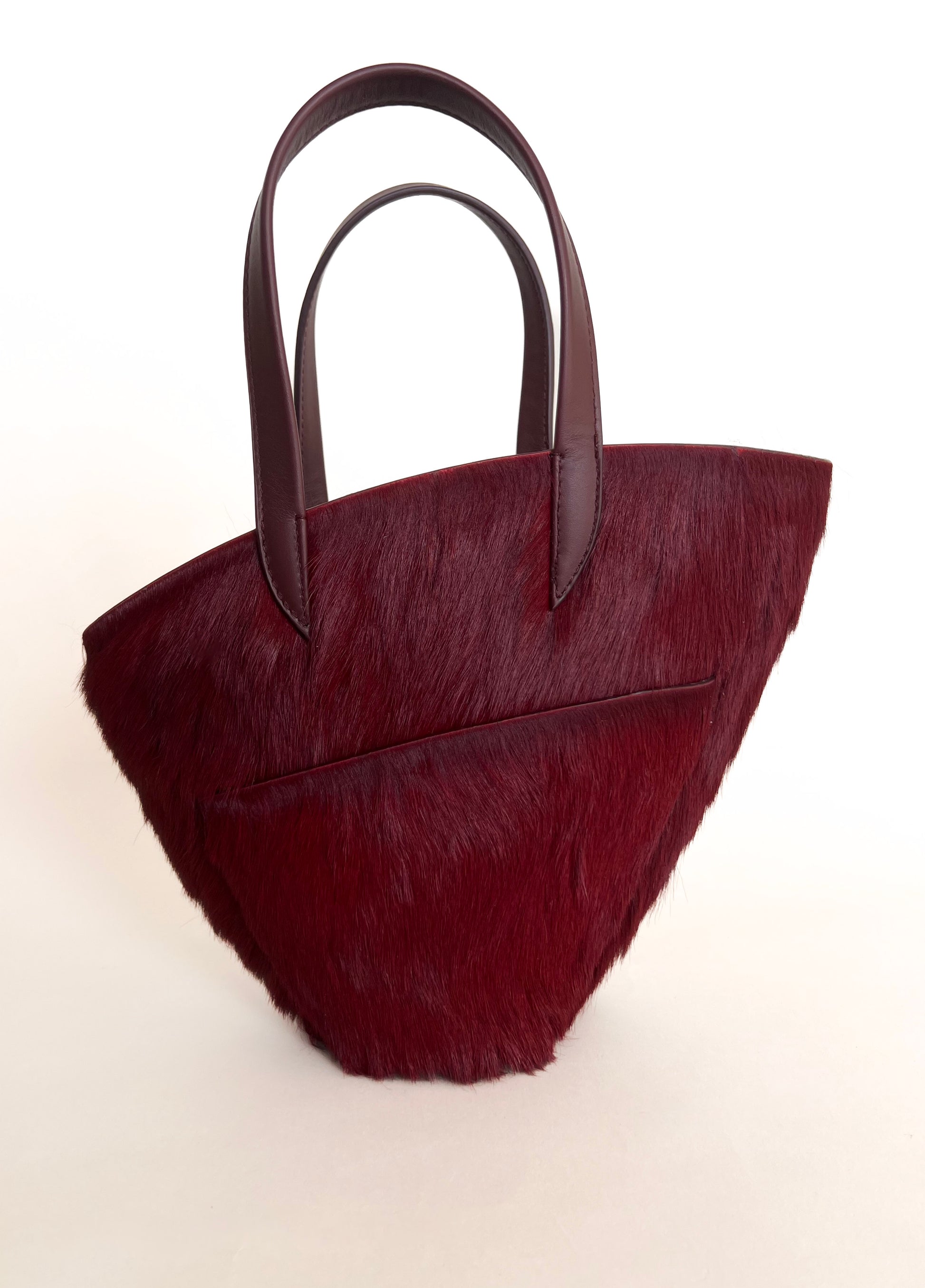 Moulded on a wooden form this style embodies the sculptural language that is pivotal to Collection 101. Fully bonded to fine Italian suede, this mini tote can be worn as a top handle or over the shoulder with the detachable crossbody strap. The Asymmetric curve of the top edge lends this simple yet beautiful tote a poetic feel.