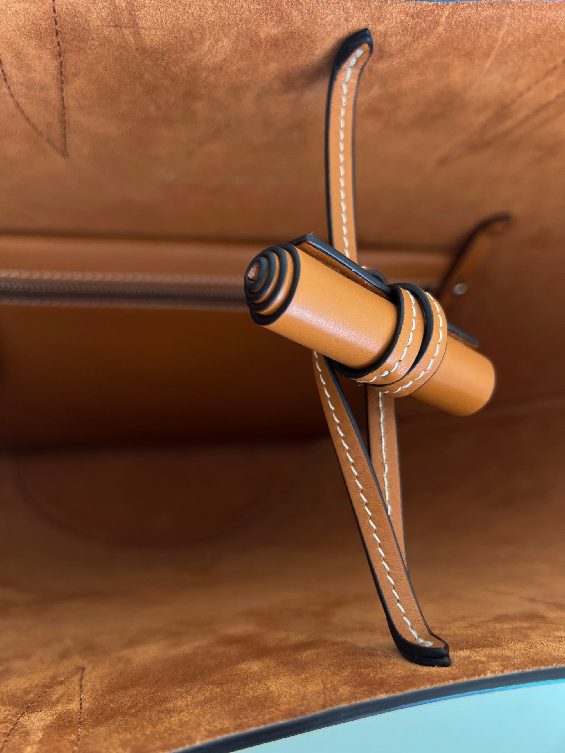 Leather toggle closure.