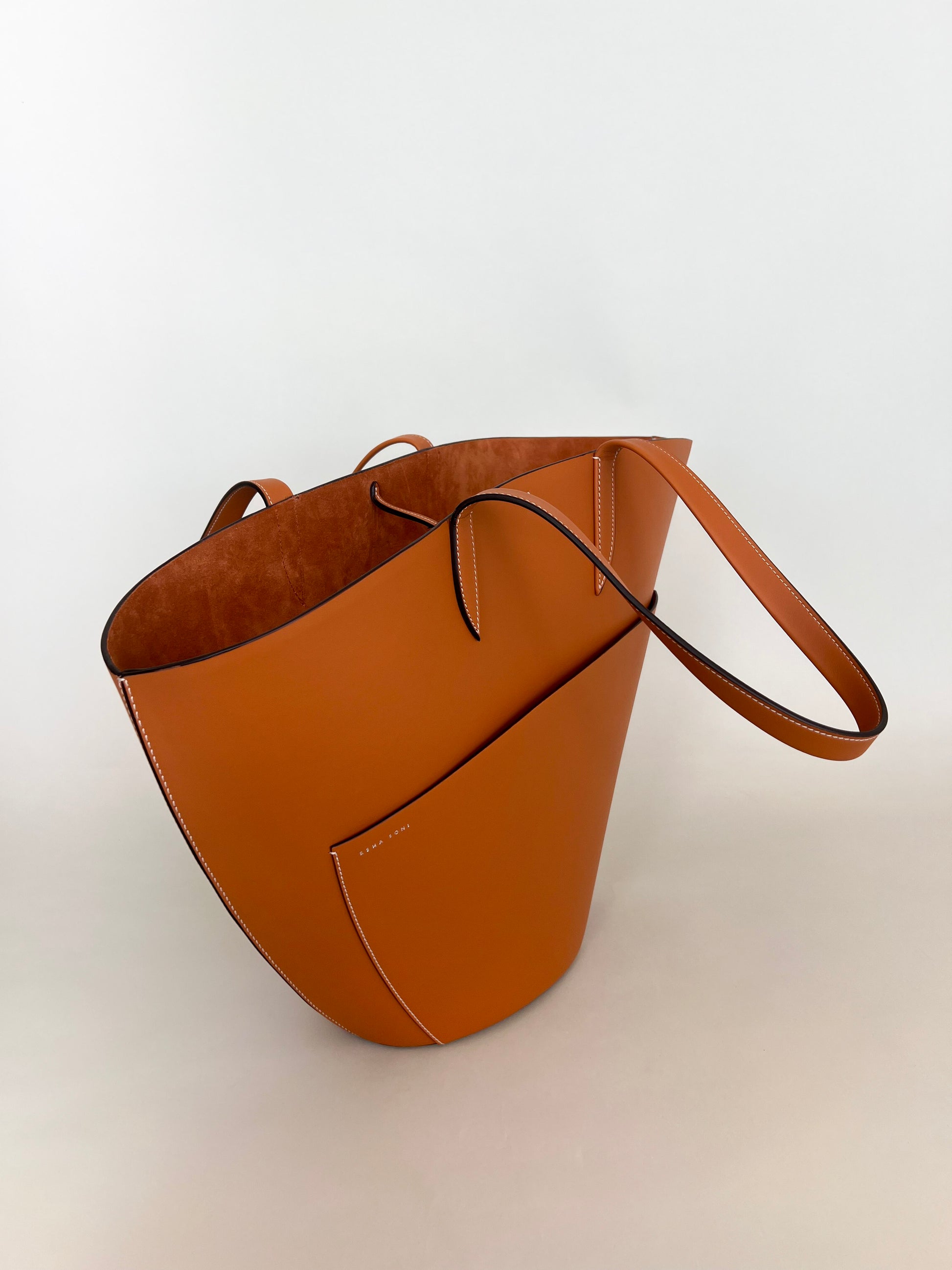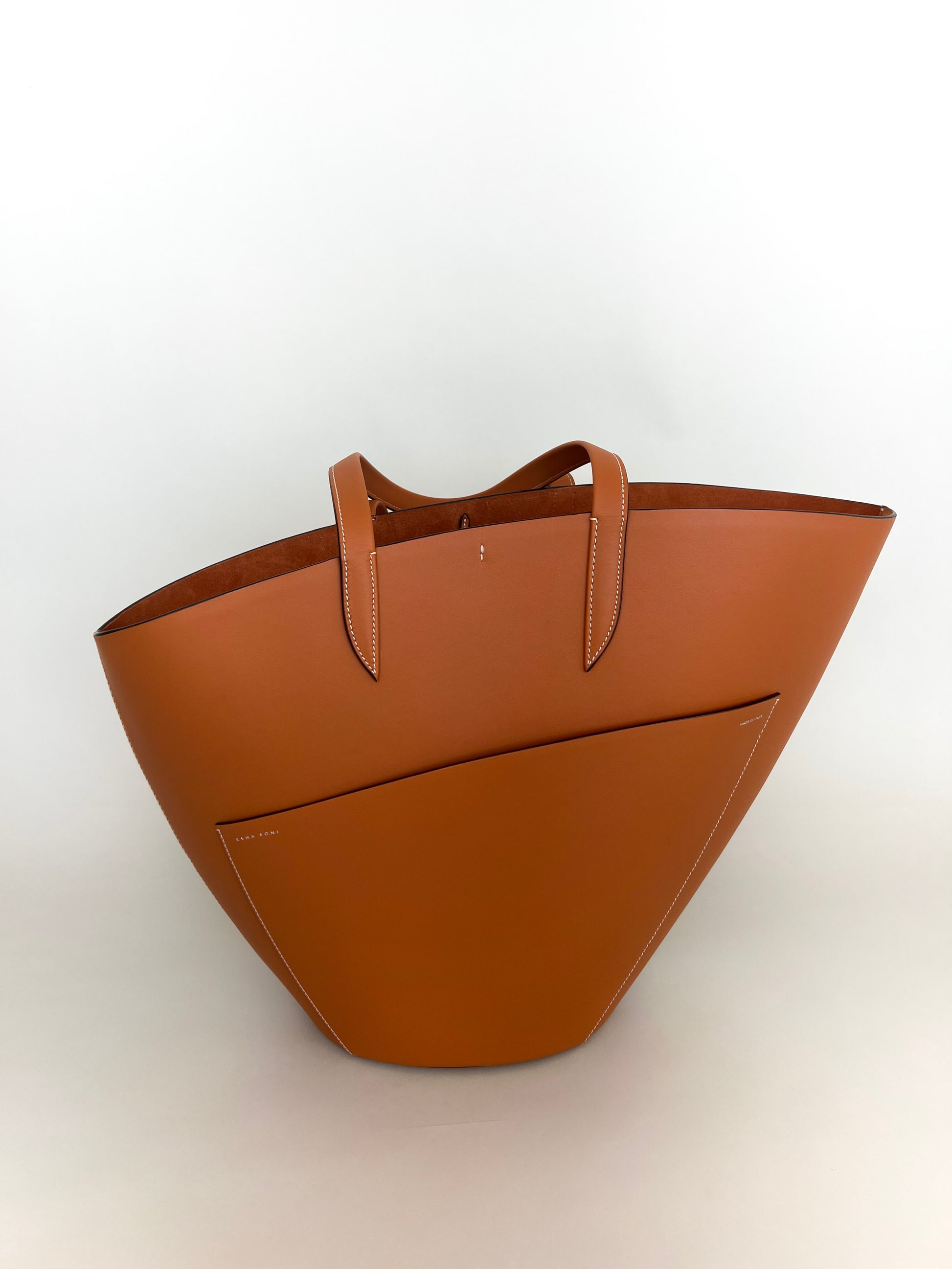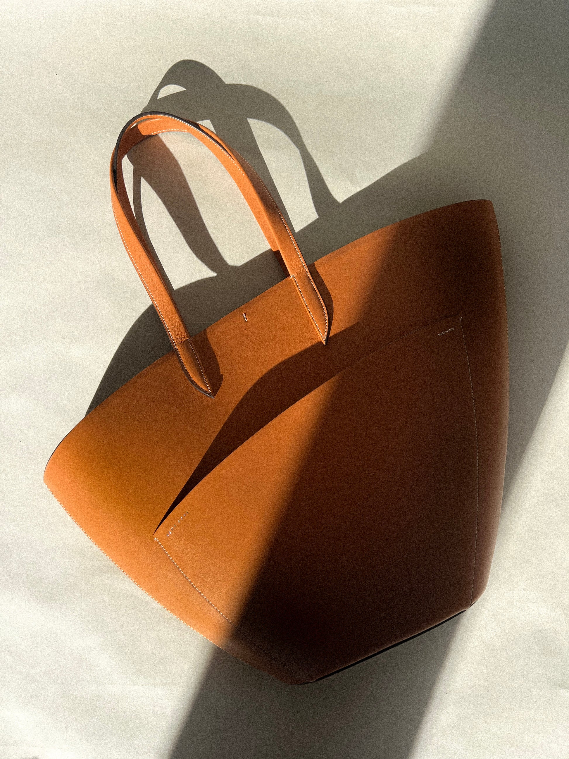 The dramatic curve of the top edge of the bag lends this simple yet beautiful tote a poetic feel.