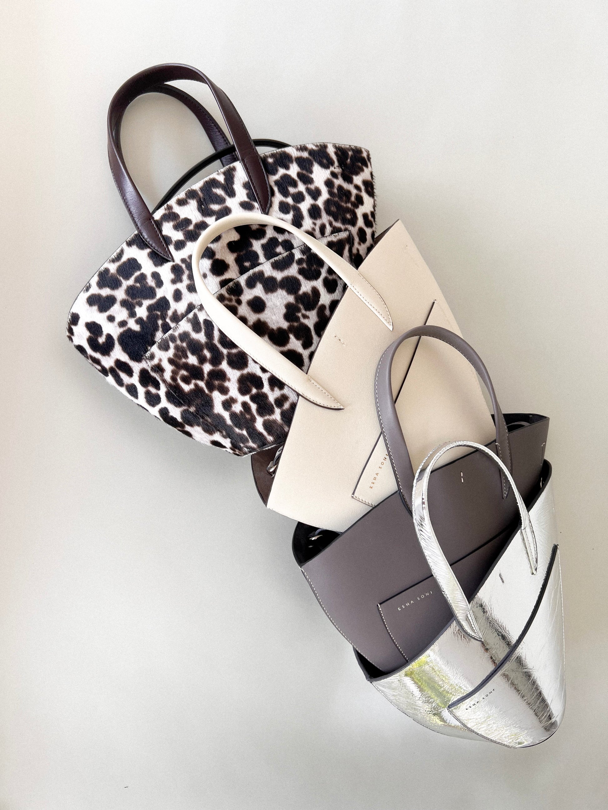 Moulded on a wooden form this style embodies the sculptural language that is pivotal to Collection 101. Fully bonded to fine Italian suede, this mini tote can be worn as a top handle or over the shoulder with the detachable crossbody strap. The Asymmetric curve of the top edge lends this simple yet beautiful tote a poetic feel.