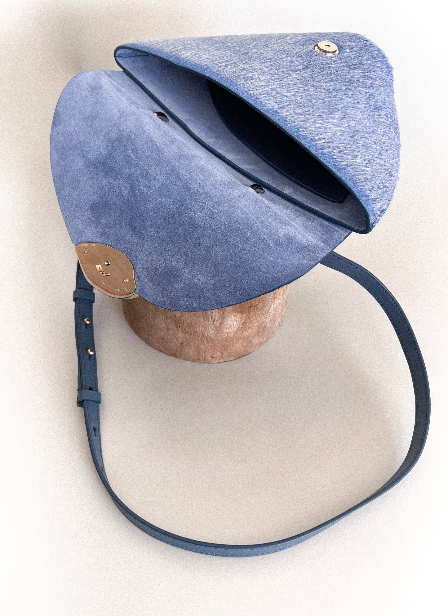 All hardware pieces are custom made in brass and plated with 0.30 microns of gold. Removable crossbody strap