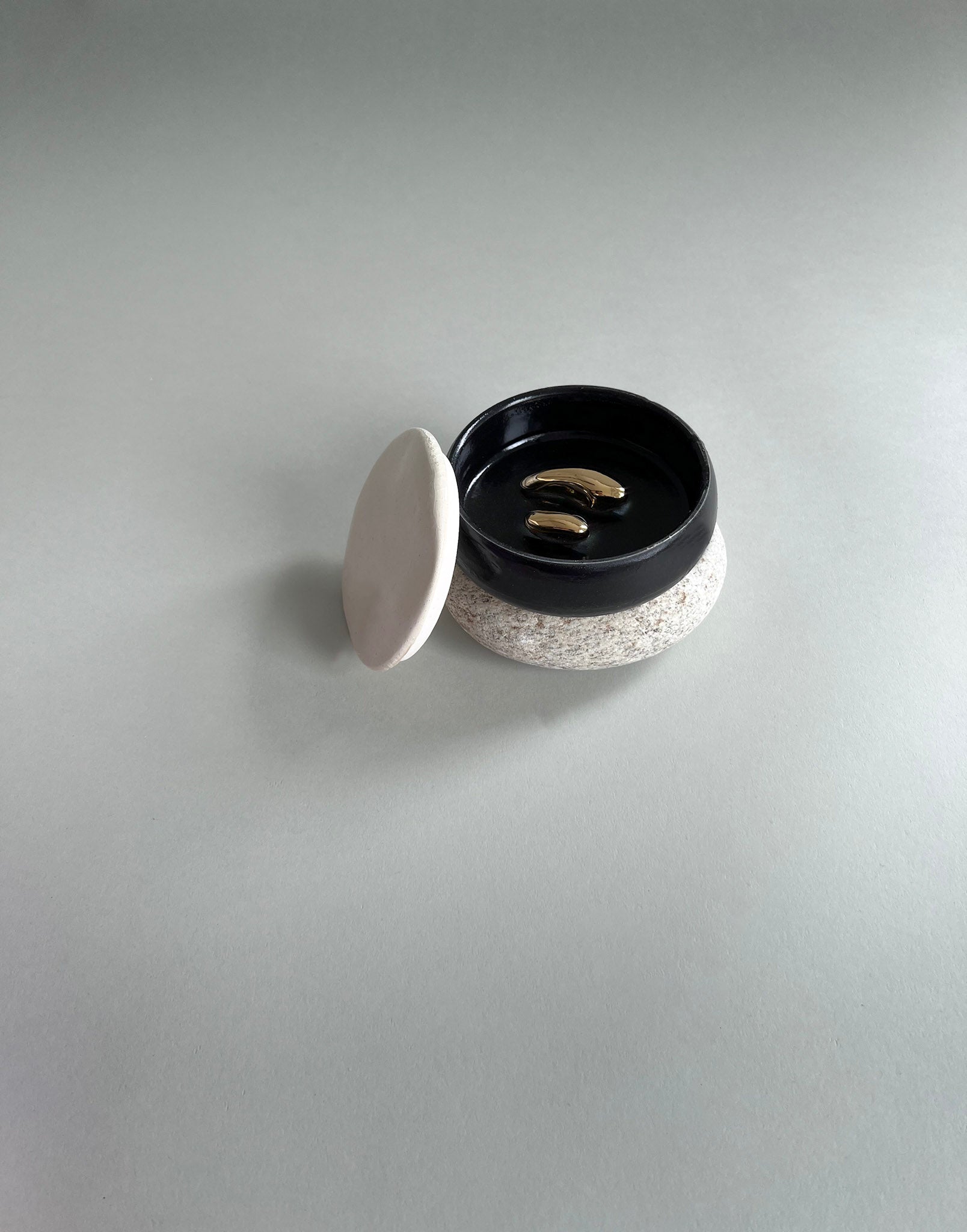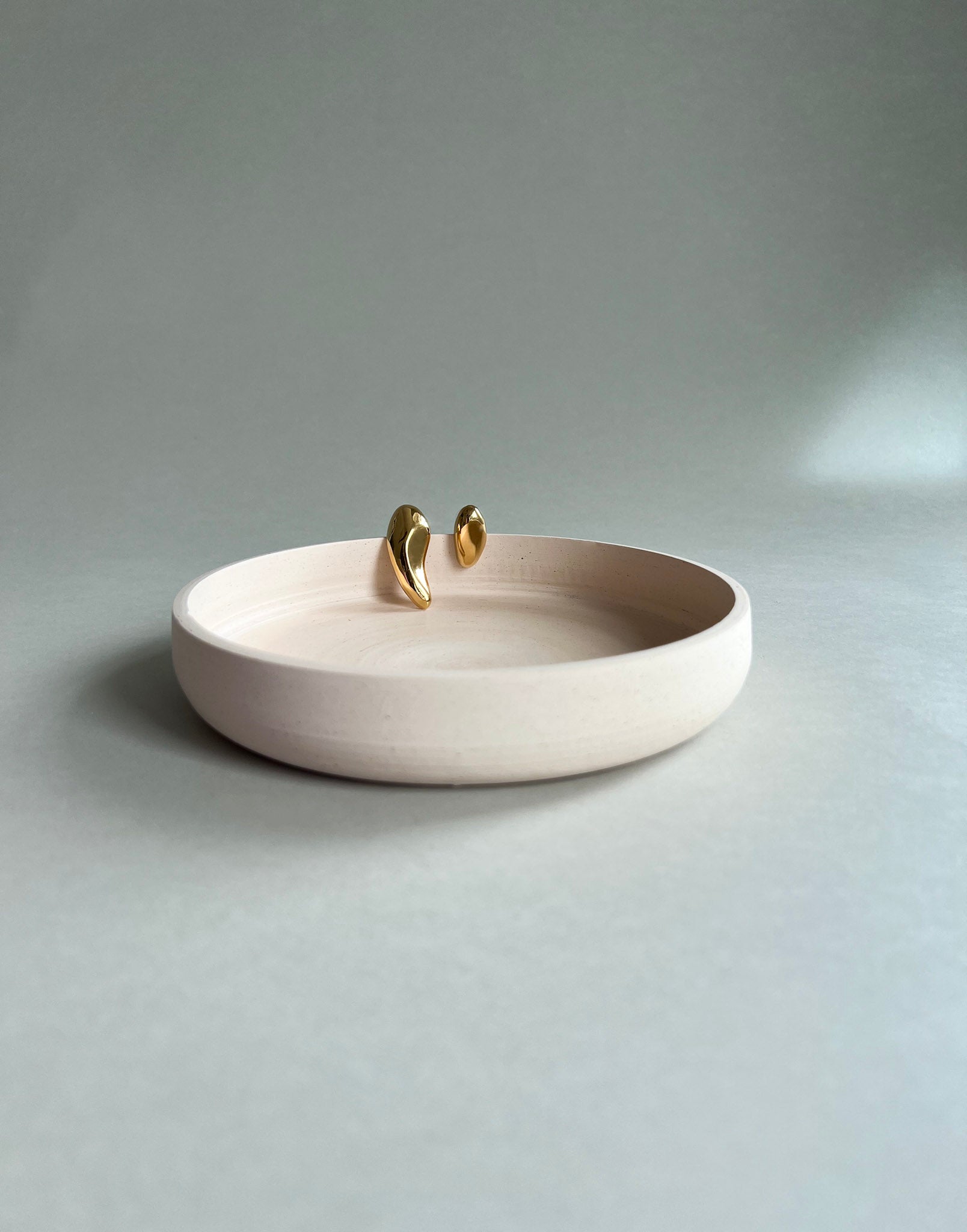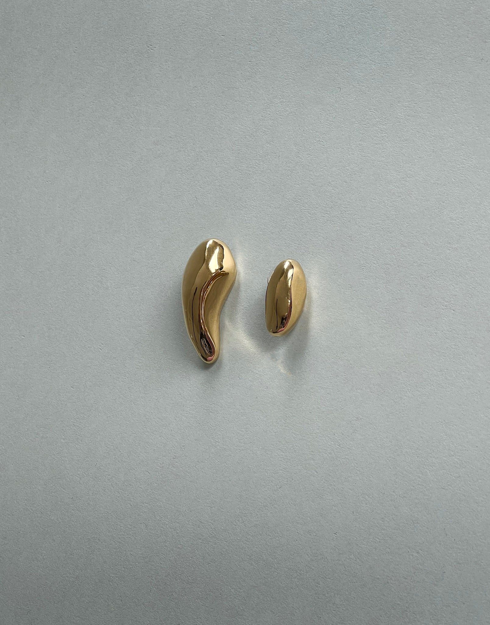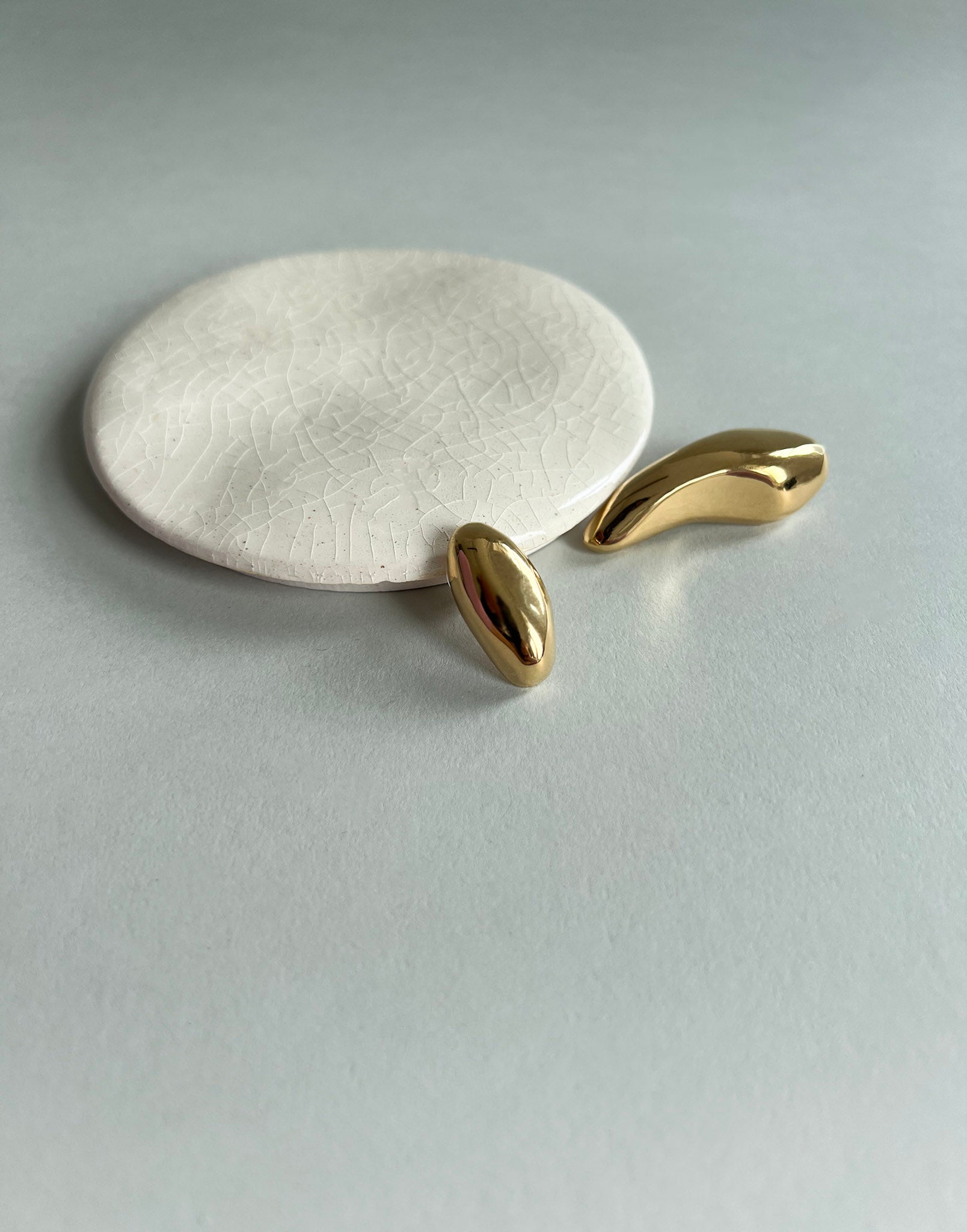 Asymmetric studs, organic in shape and sculpted by hand before being cast into a mold.