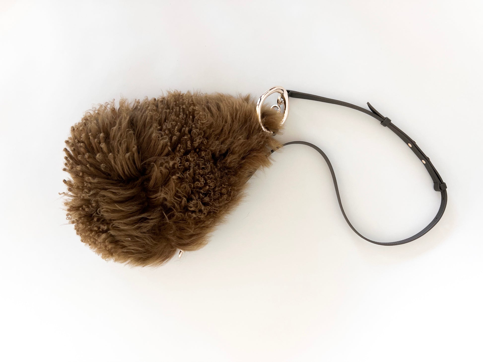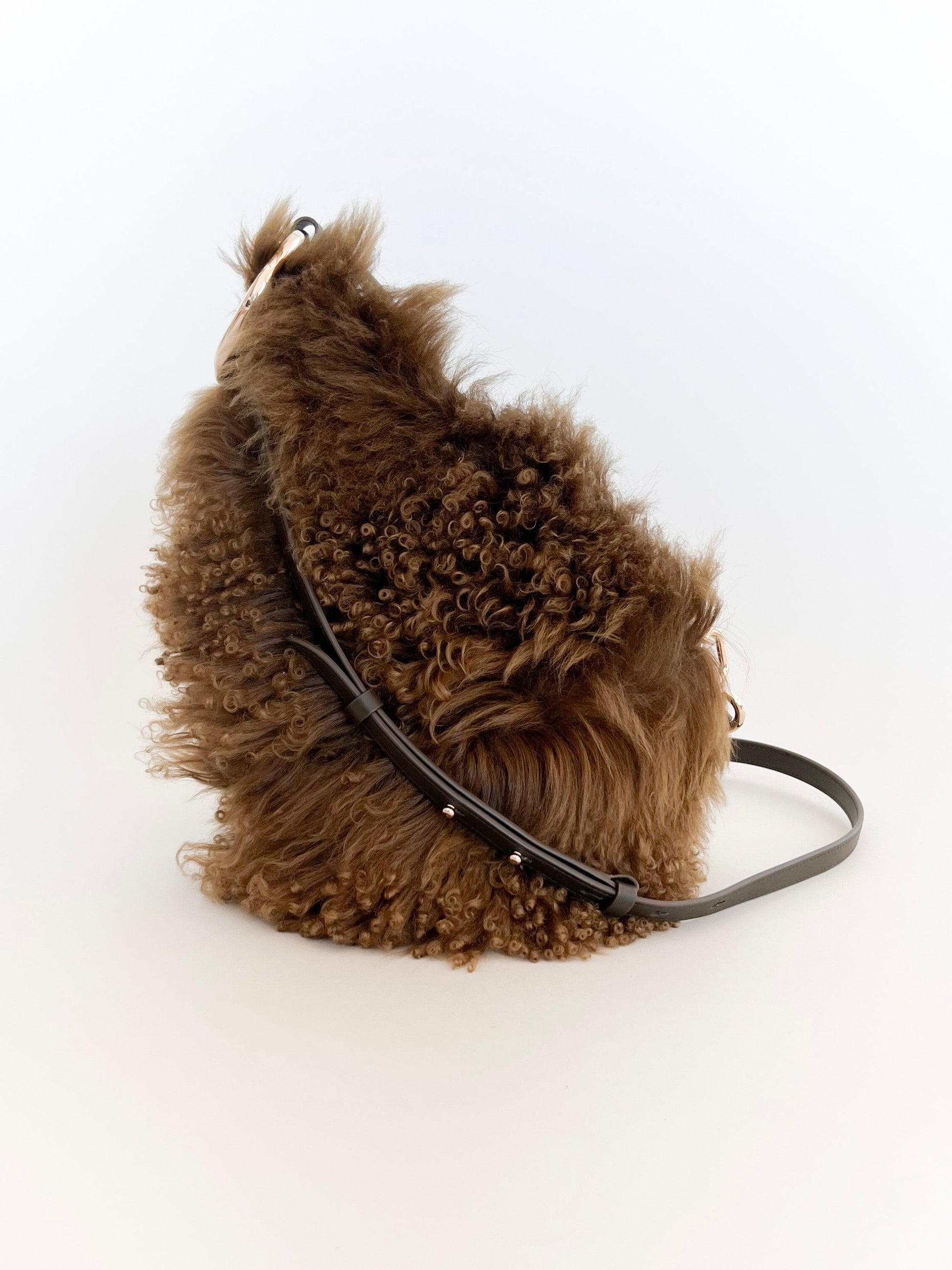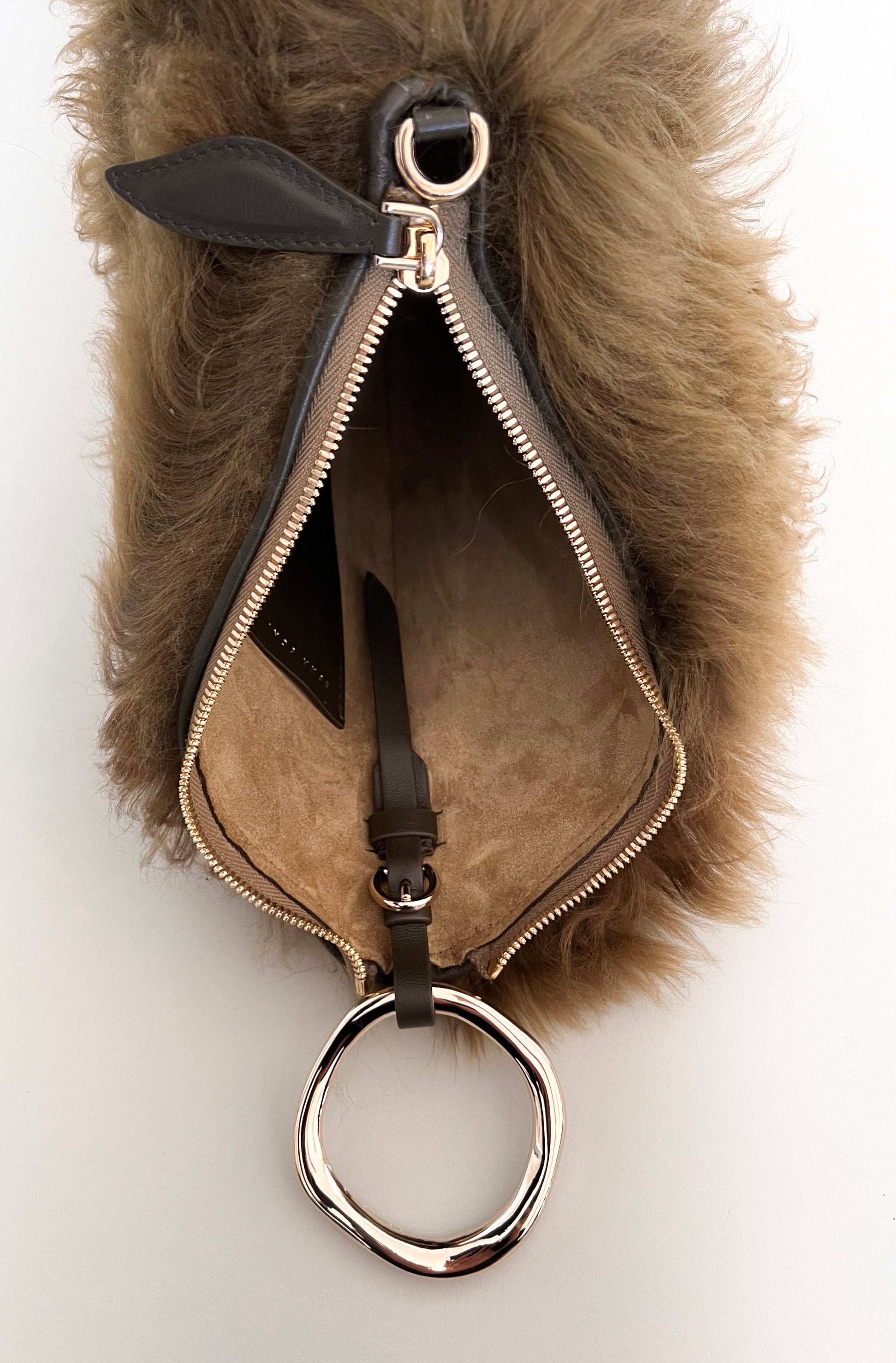 Make a statement with this cozy and luxurious shearling bag that can we worn on the wrist with the bangle or as a crossbody.