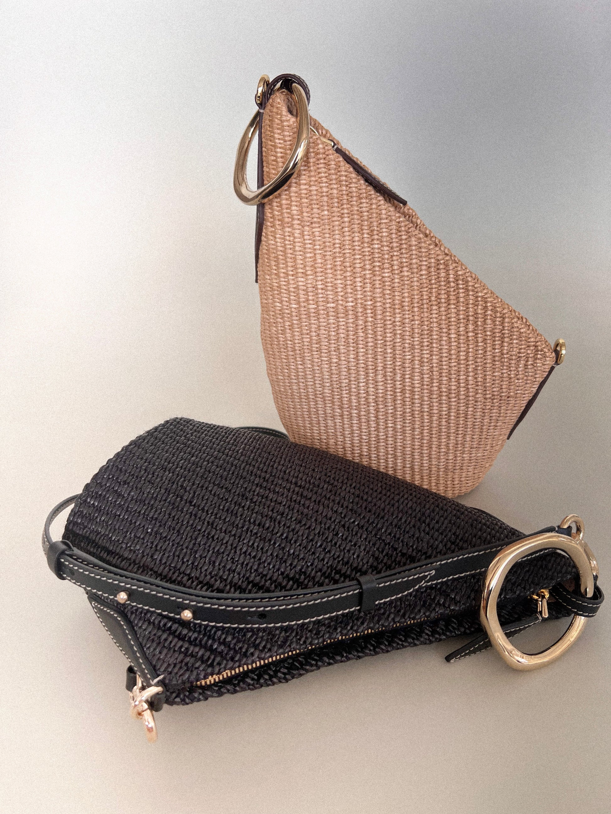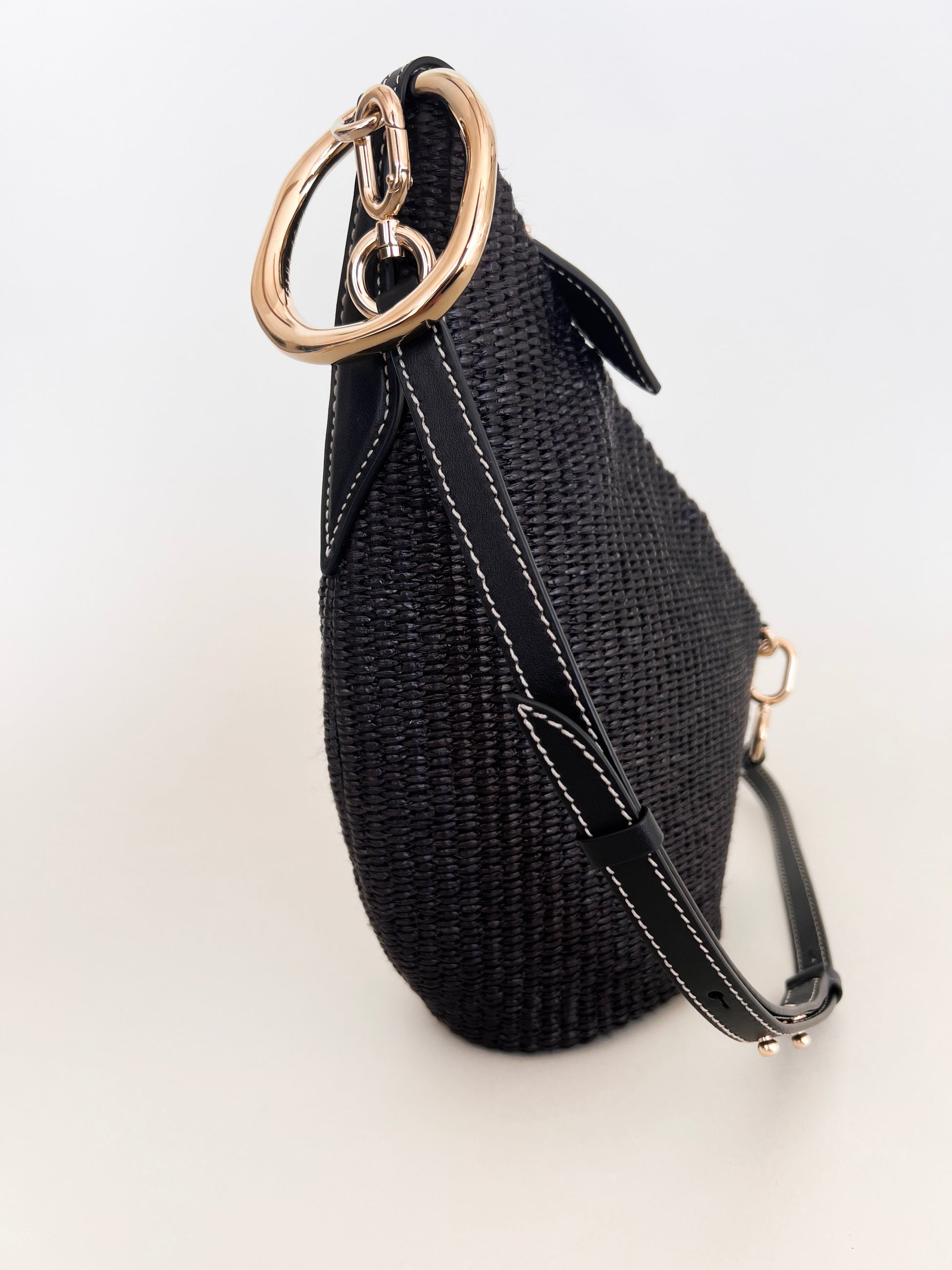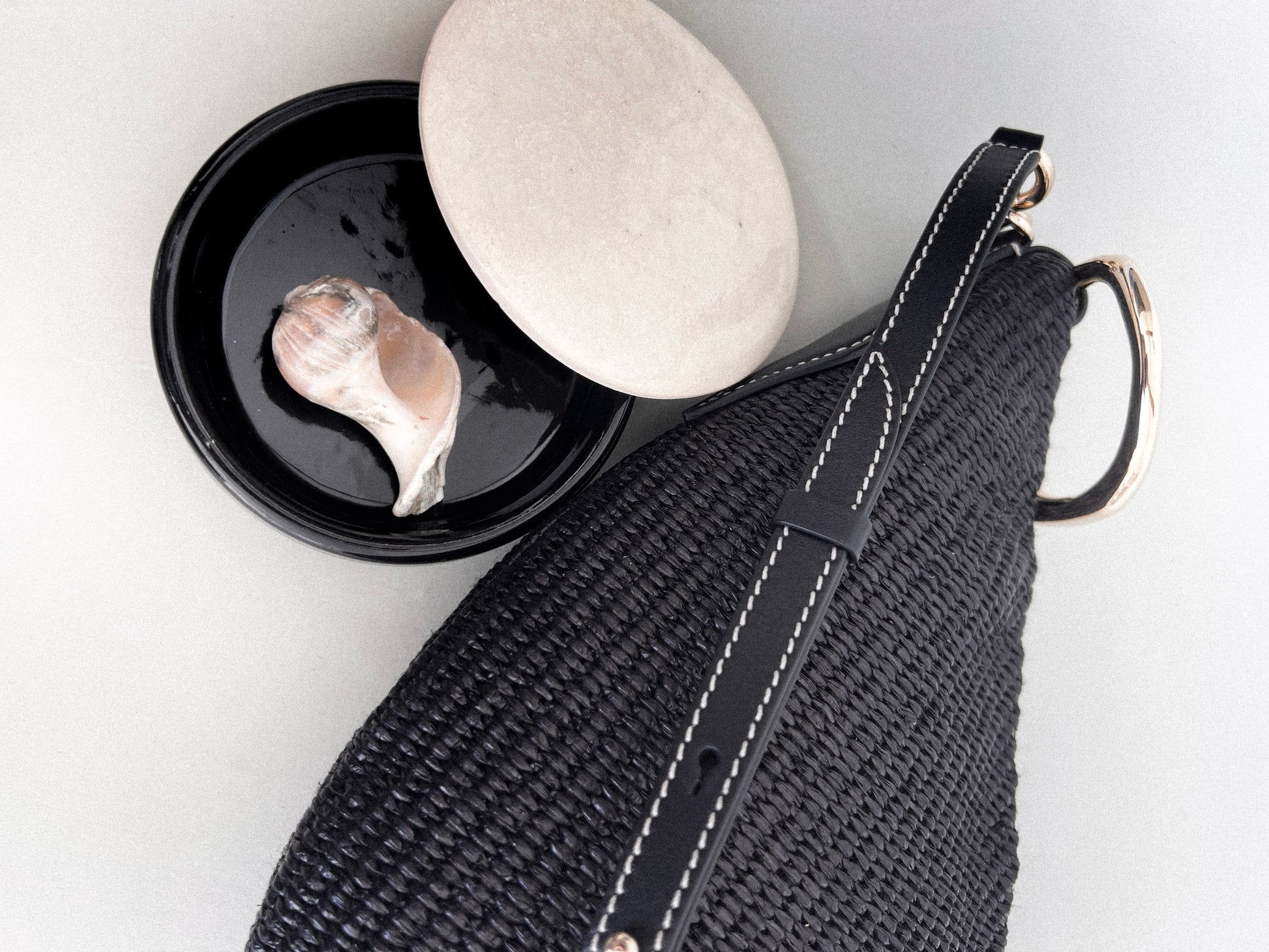 The Raffia Slope is handcrafted in Italy. Ecru contrast stitching accentuates the Italian calf leather trim.