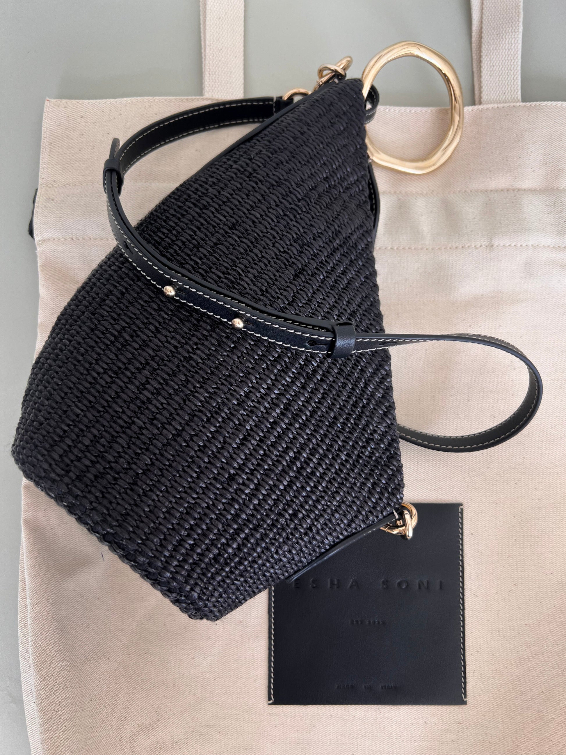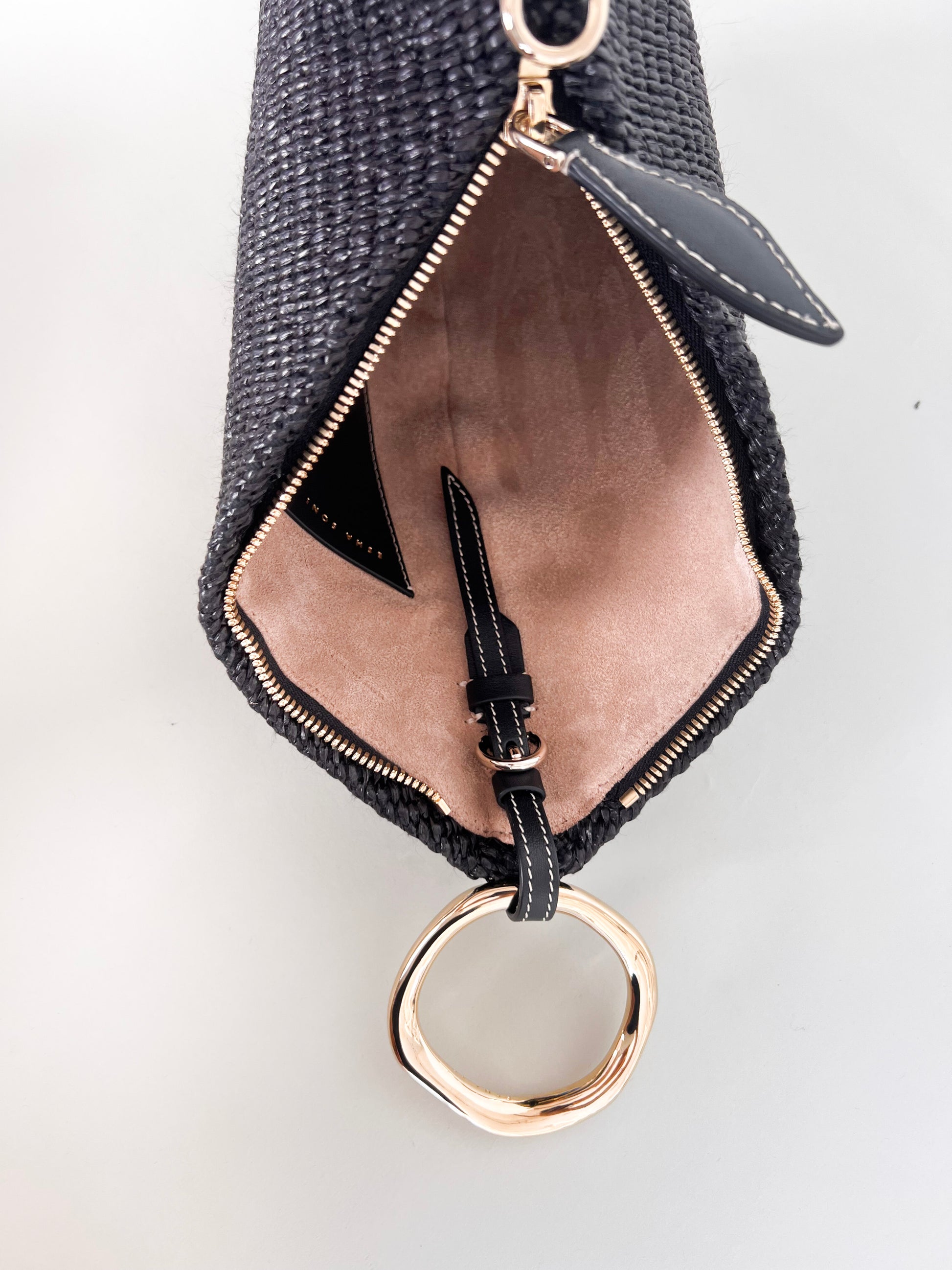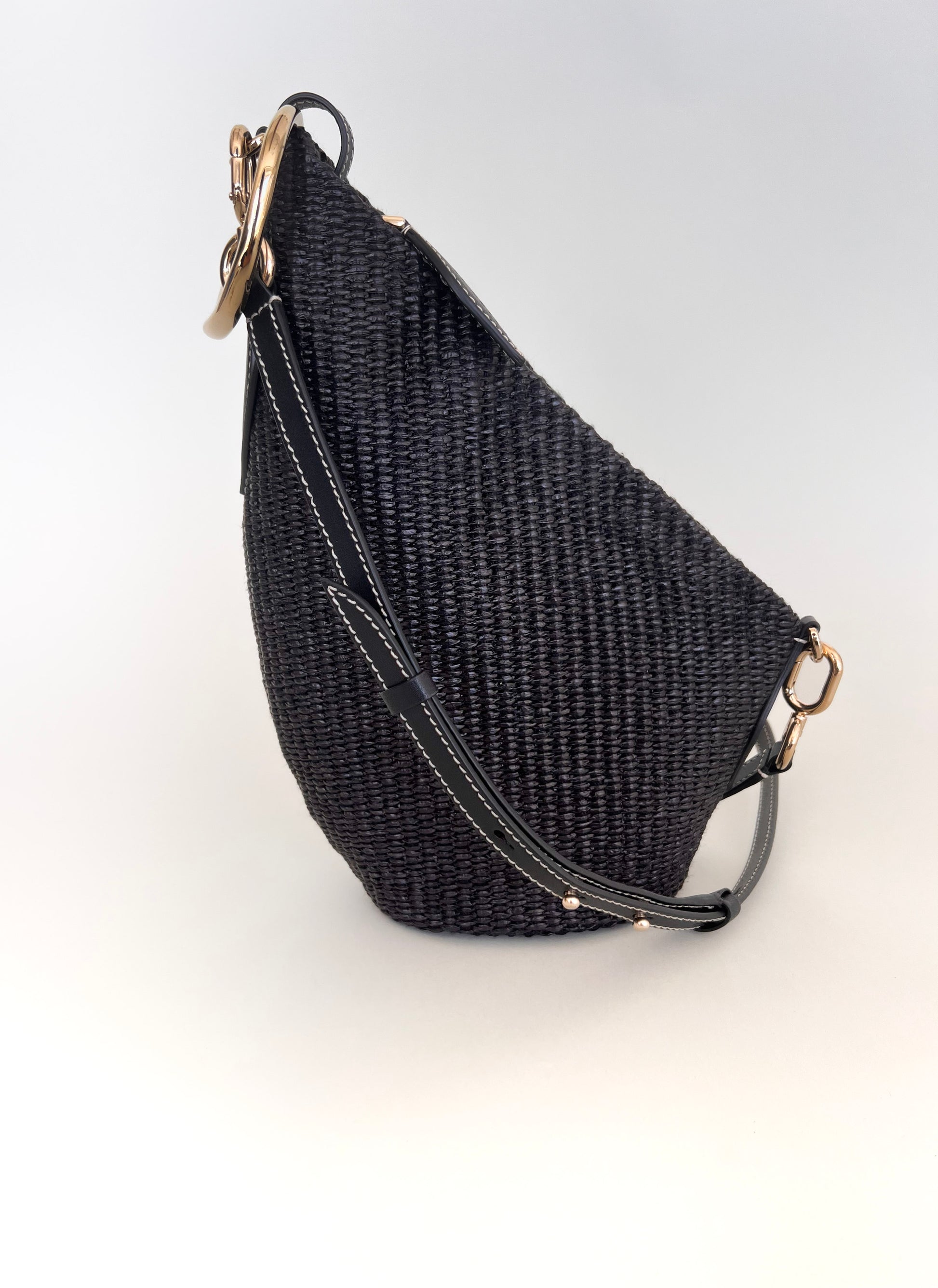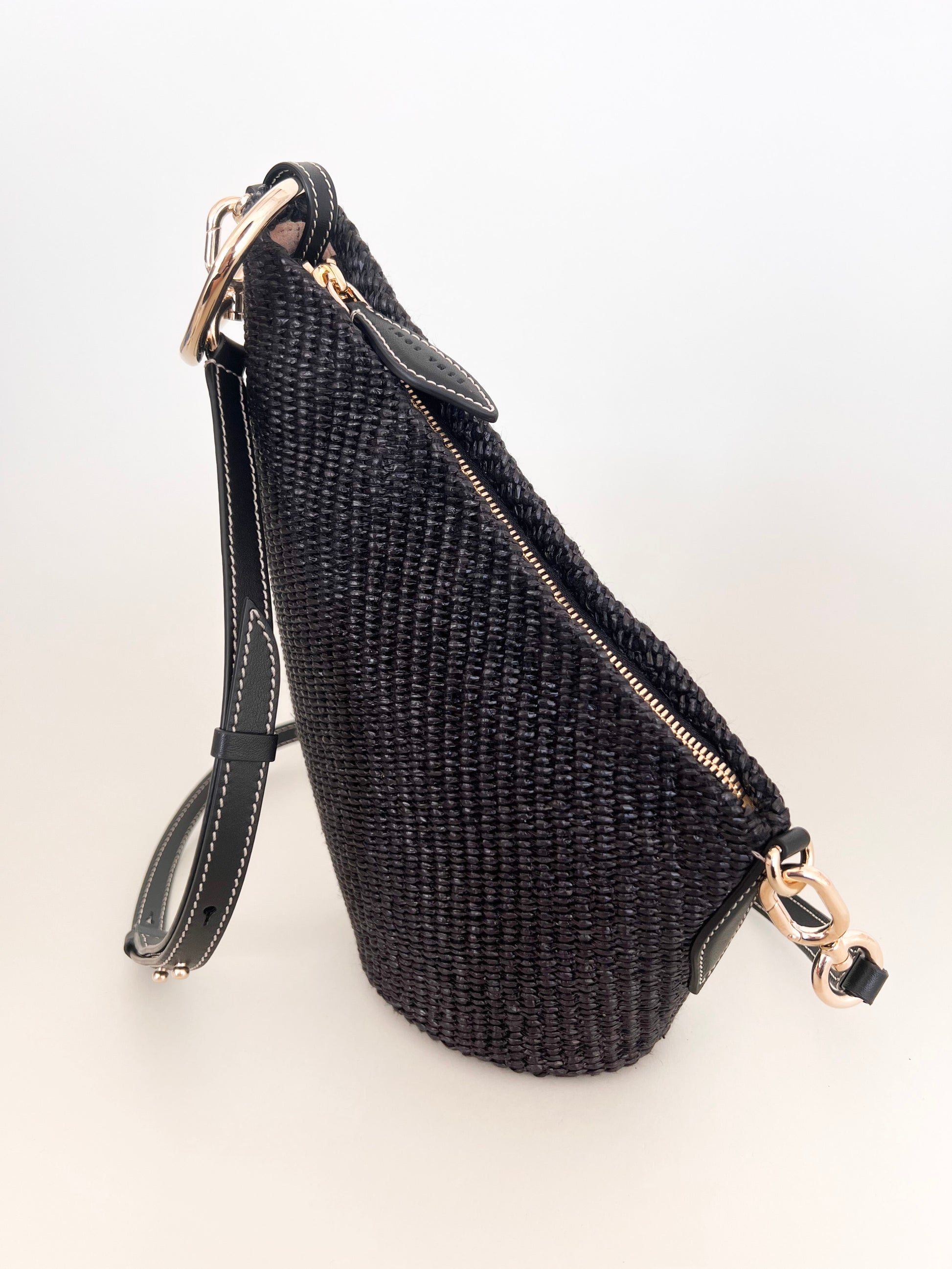 The Raffia Slope is handcrafted in Italy. Ecru contrast stitching accentuates the Italian calf leather trim.